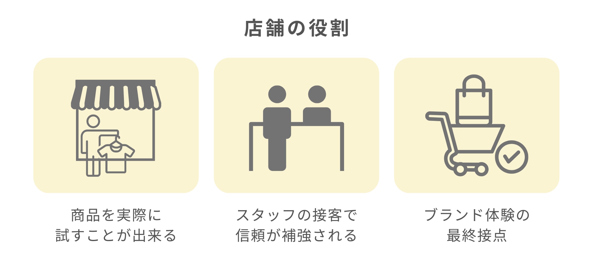 図のように、店舗は「体験・安心感・購入」を担う重要な接点だからこそ、SNSだけで完結させず、店舗運営とどう結びつけるか を設計することが成果に繋がる鍵になります。