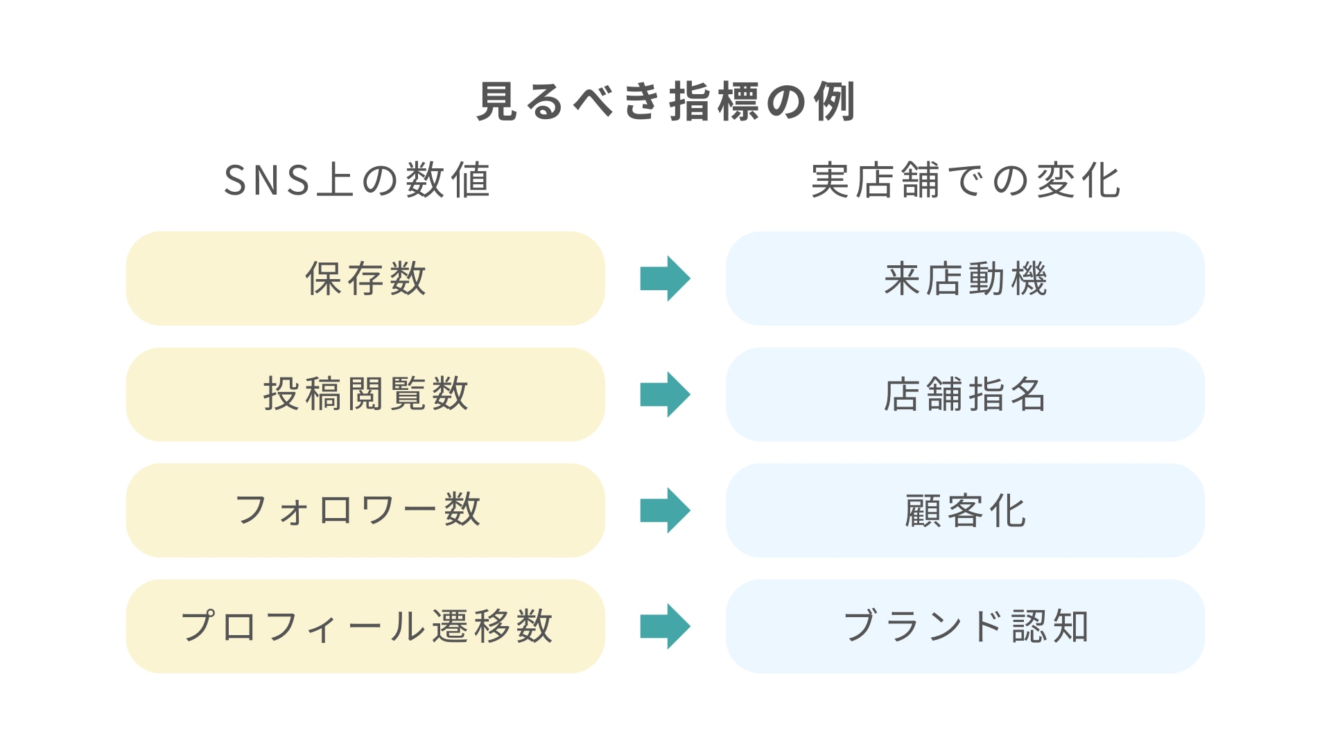 SNS上の数値 → 実店舗での変化 を対応させた指標です。
